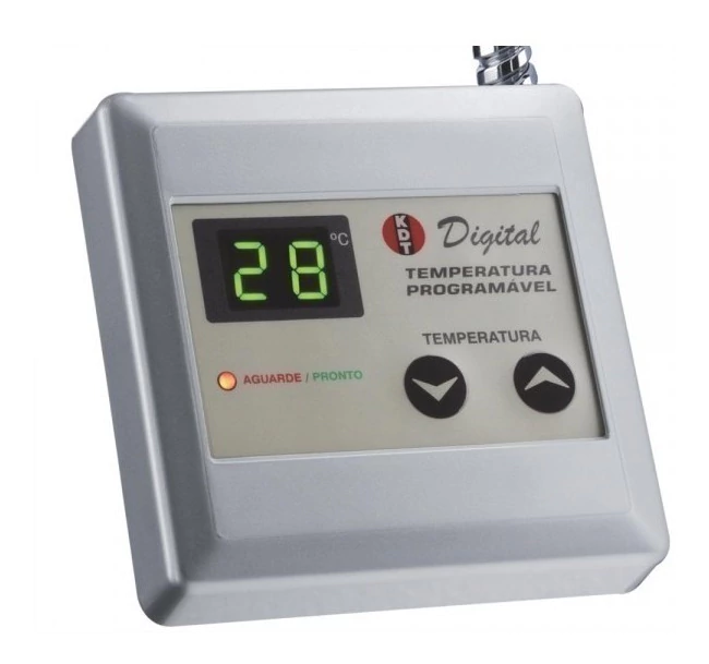 Com Design exclusivo e resistência extremamente silenciosa, a Ducha Digital KDT proporciona uma sensação de relaxamento e prazer, um verdadeiro show de banho. Única no Mercado com a opção de escolher e manter a temperatura da água, para que seu banho seja agradável e econômico. Através do Controle Remoto Digital, você programa a temperatura de grau em grau (até 52°C) e pode alterá-la durante o banho com total segurança. A Ducha DIGITAL ao ser acionada utilizará sempre o mínimo de energia possível para aquecer a água na temperatura que você digitou no Controle Remoto Digital.