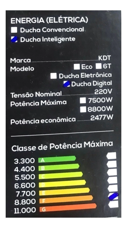 - Única ducha que mostra a vazão, o tempo de banho, a temperatura original e a temperatura programada no painel digital